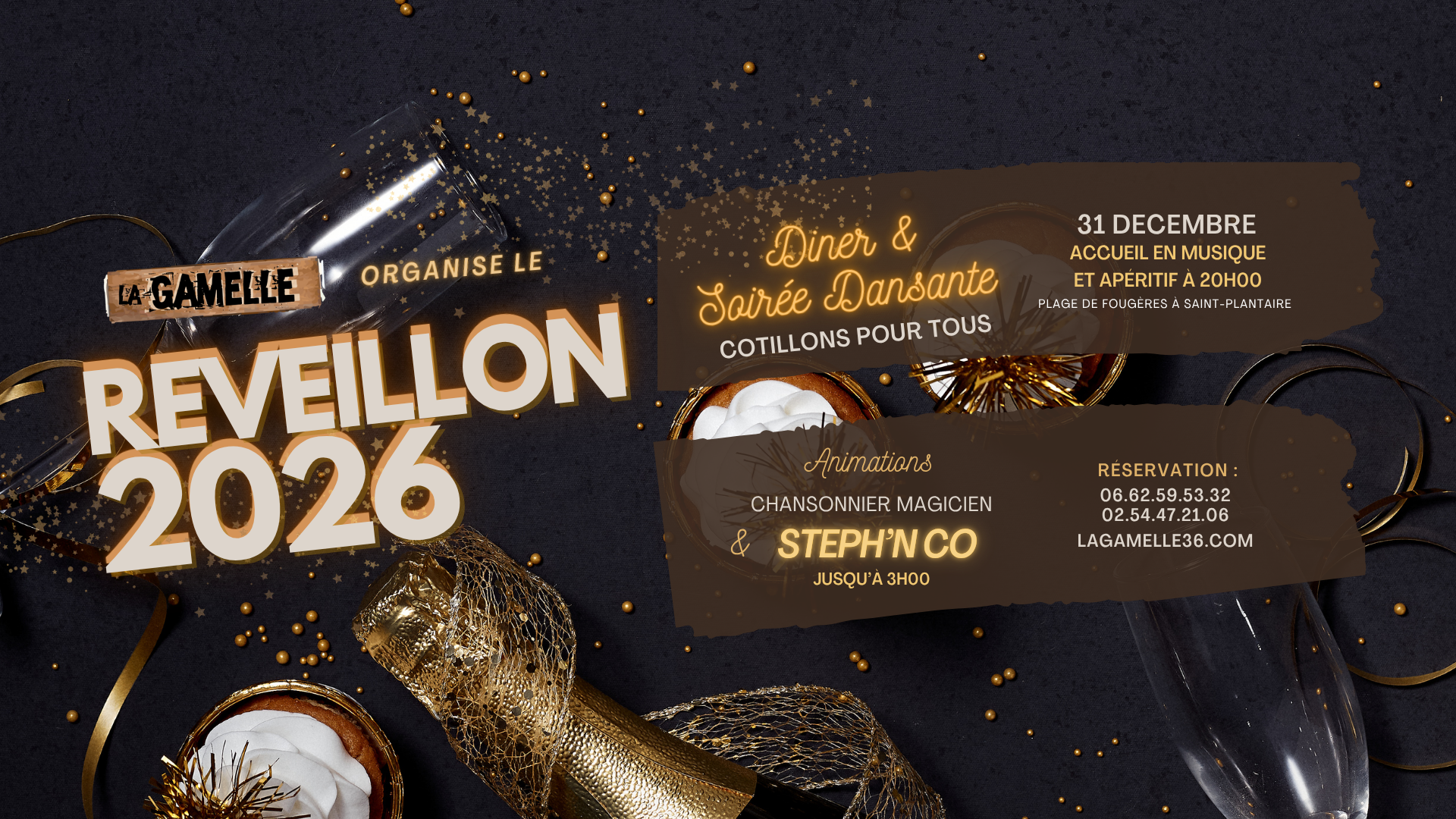 sBienvenue à notre soirée du Nouvel An à La Gamelle ! Nous sommes ravis de vous accueillir pour une soirée de célébration, accompagnée d’un délicieux repas et de danses endiablées.